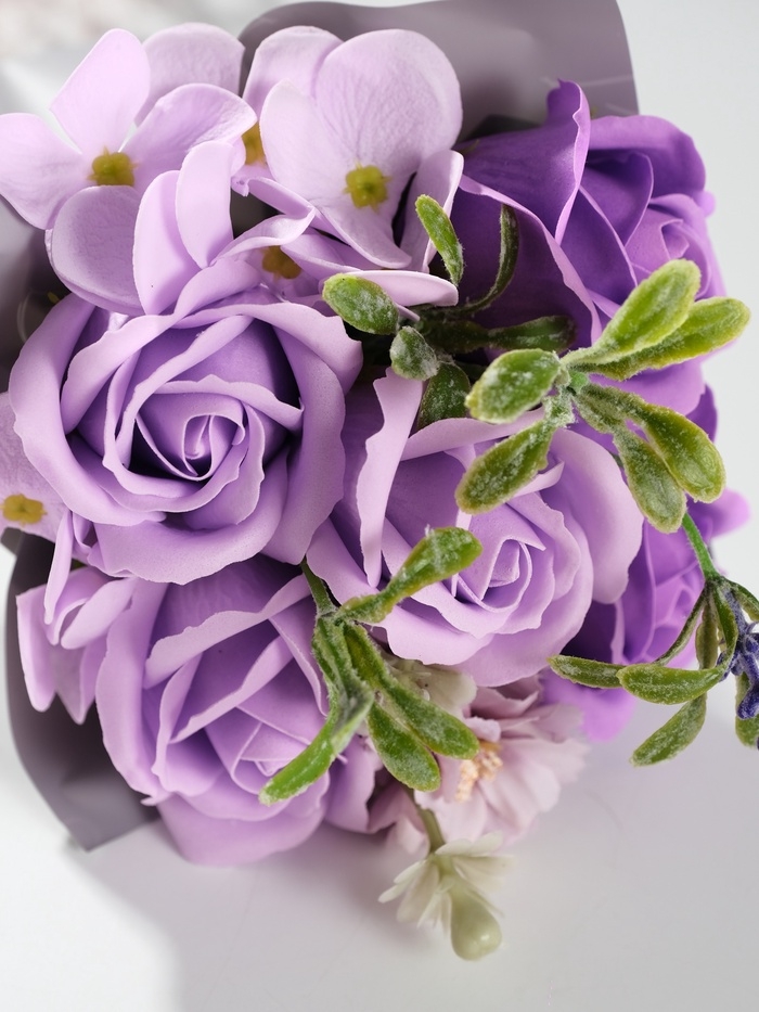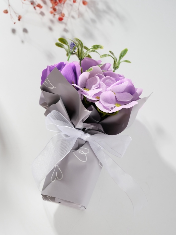 Букет из мыльных лепестков "Розы и флоксы в подарочной упаковке" сиреневый 12,5х12,5х20,5 см 10667