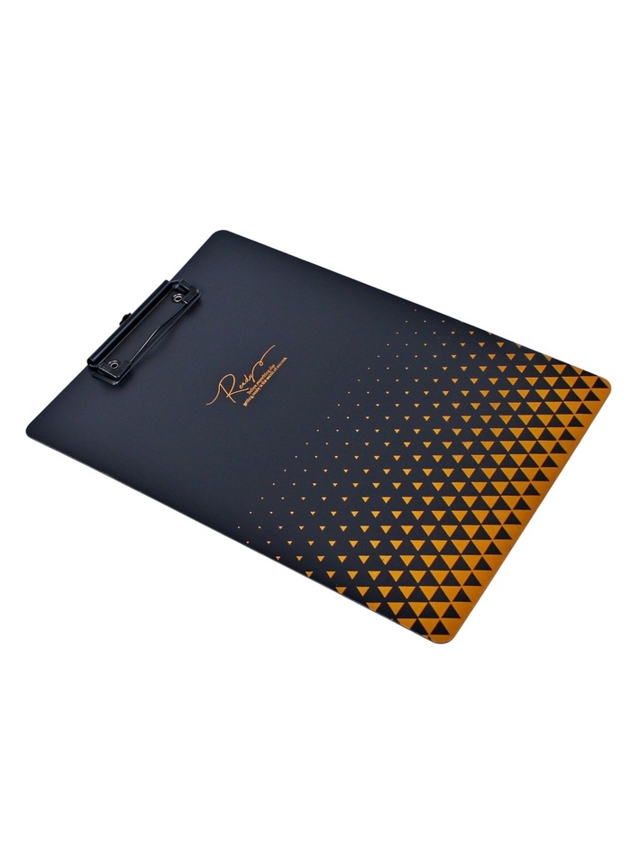 Планшет с прижимом формат А4 пластик1600мкр,Черная с металлизированной отделкой МИКС