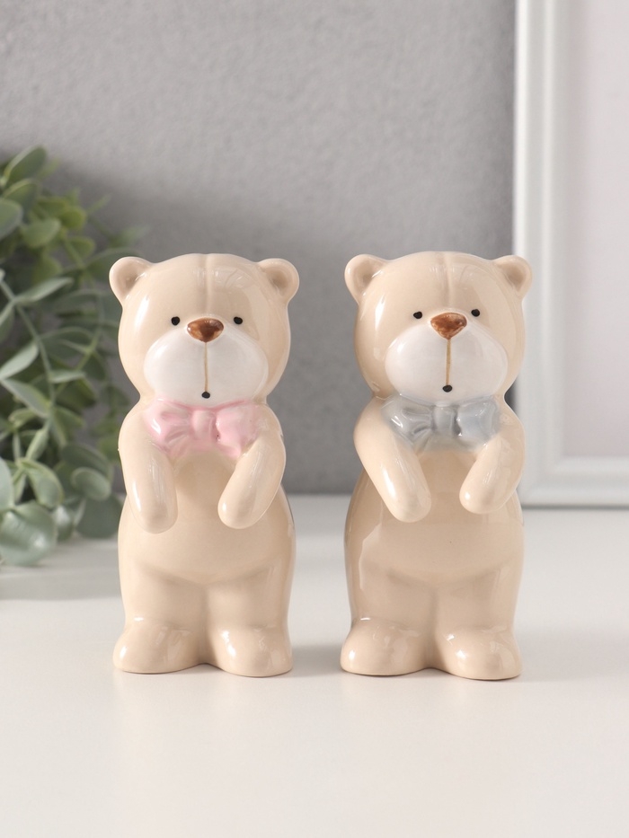Сувенир керамика "Медвежонок с бантом" МИКС 3х5,5х10,8 см