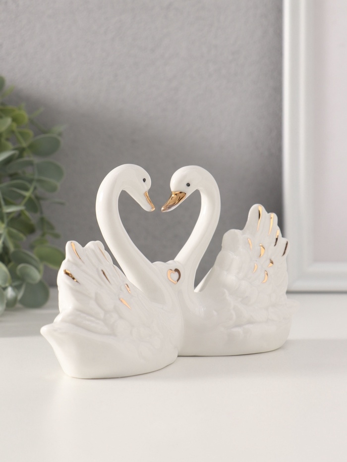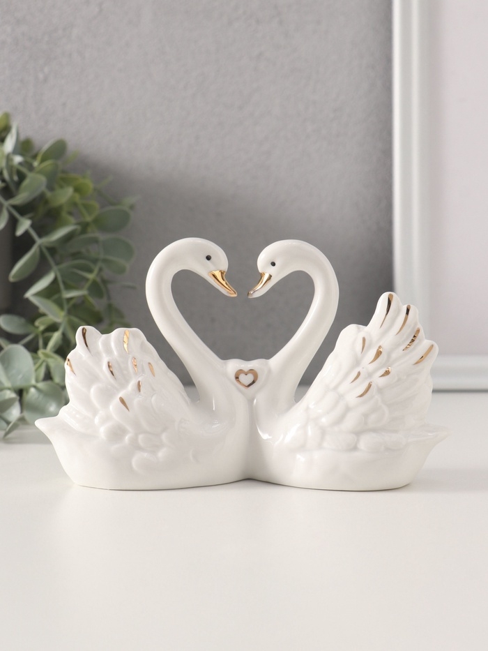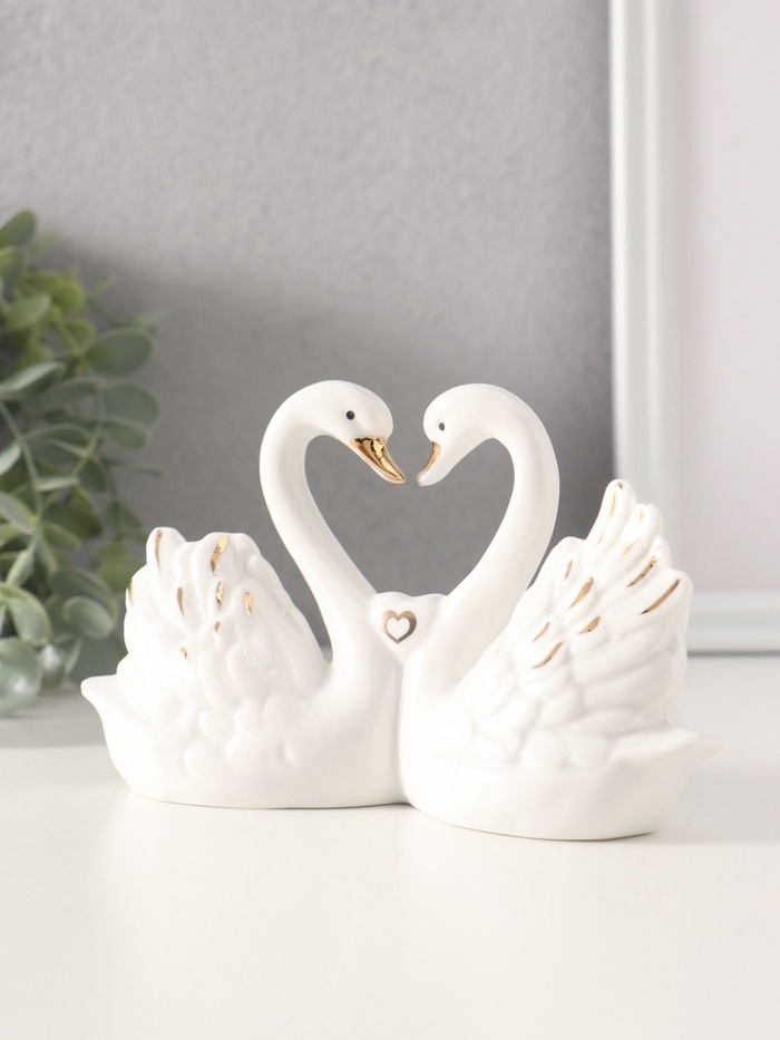 Сувенир керамика "Белые лебеди с маленьким сердечком" с золотом 4х15х9 см