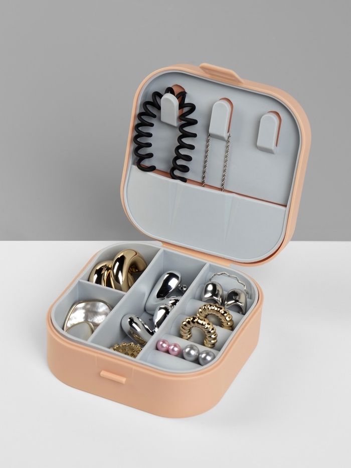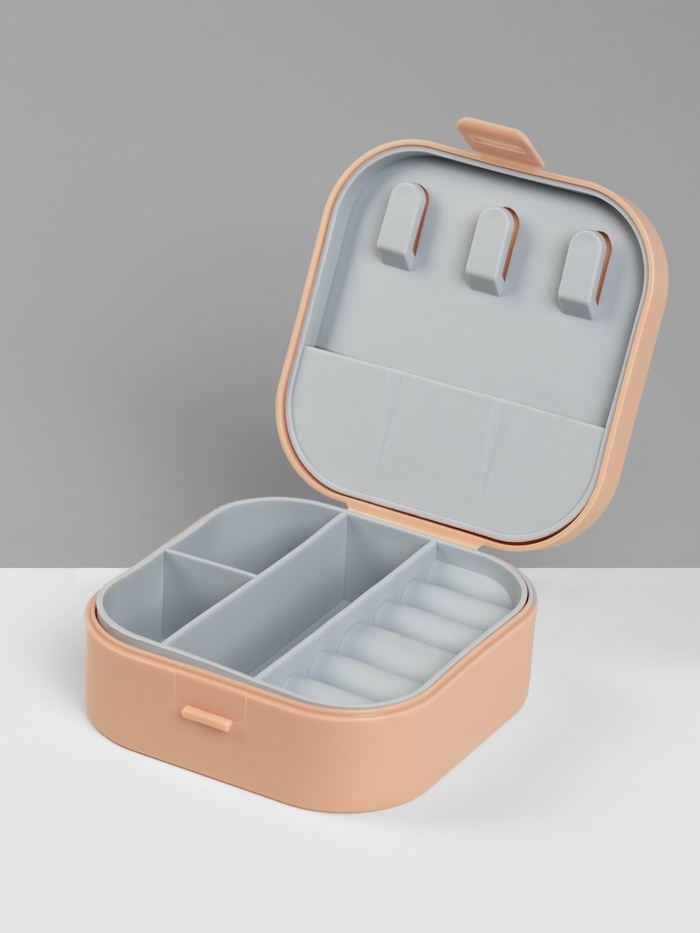 Органайзер для украшений «Шкатулка», с крючками, 9×9×3.8 см, розовый