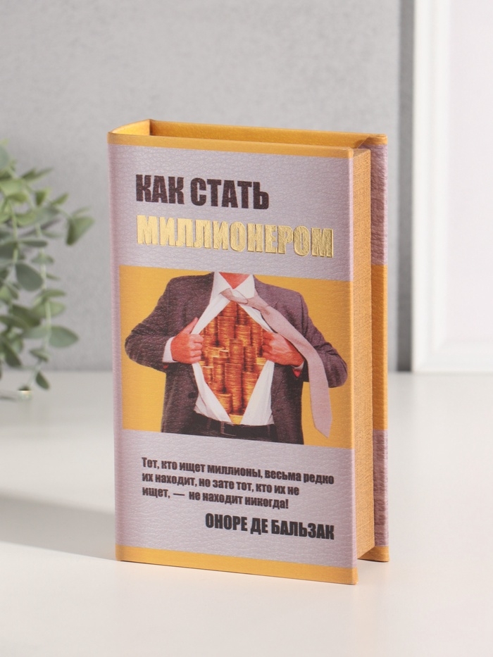 Сейф-книга дерево кожзам "Как стать миллионером" тиснение 21х13х5 см