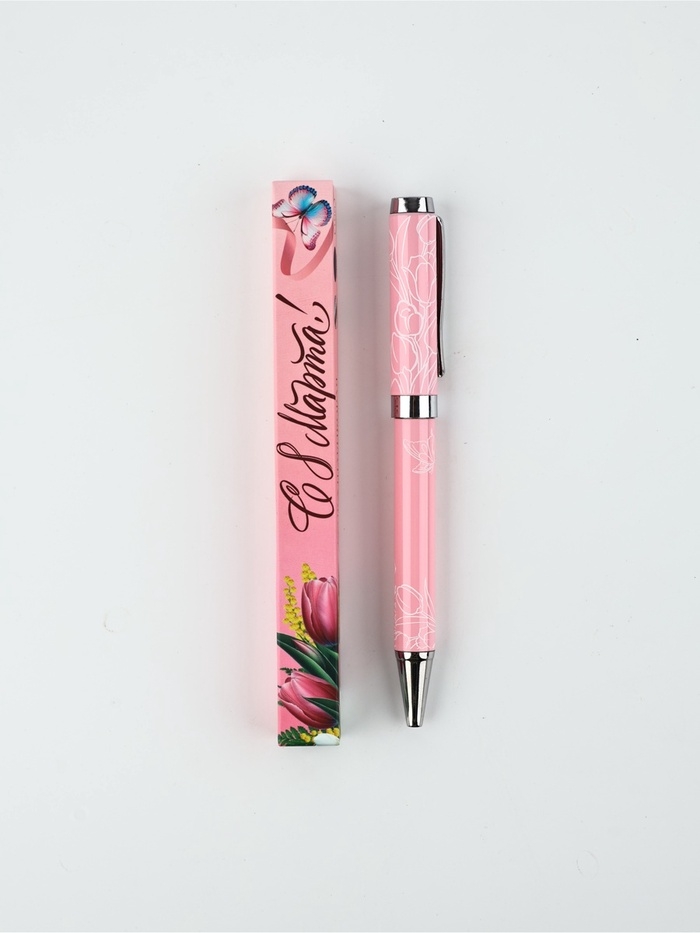 Ручка шариковая синяя паста металлический корпус в коробке «С 8 Марта!», 1.0 мм