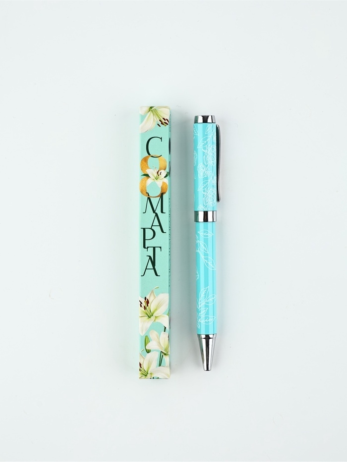 Ручка шариковая синяя паста металлический корпус в коробке «С 8 МАРТА», 1.0 мм