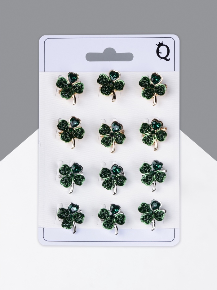 Брошь «Клевер», МИКС, (неделимая фасовка 12 шт., цена за шт.)