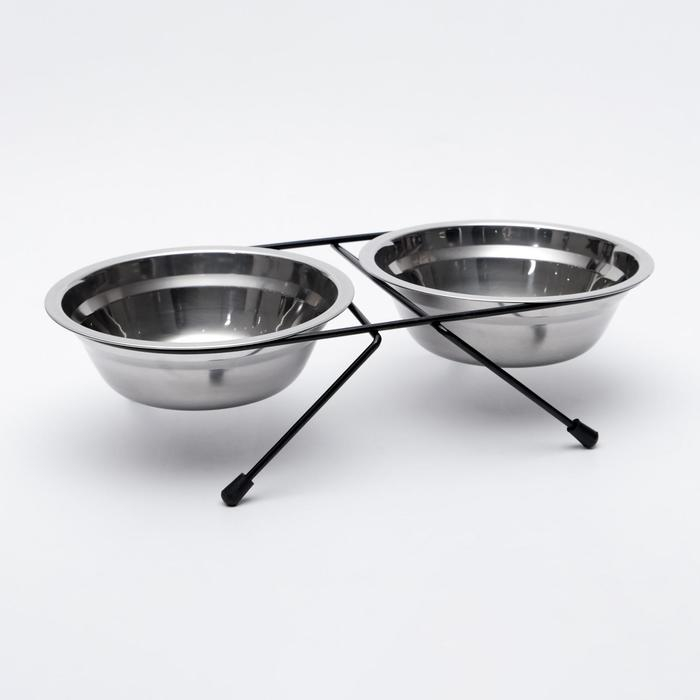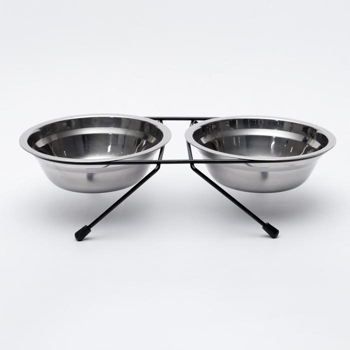 Набор из 2 мисок на подставке, 2 х 500 мл, чёрная подставка