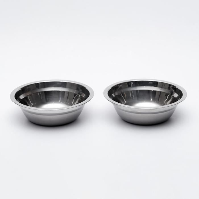 Набор из двух мисок изготовленных из высококачественной нержавеющей стали, которые предназначены для использования при кормлении домашних животных.