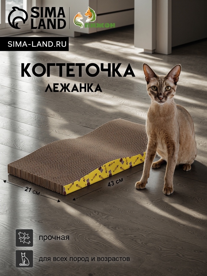 Когтеточка-лежанка "Пижон" из гофрокартона с кошачьей мятой "Волна", 43 х 21 х 3,5 см