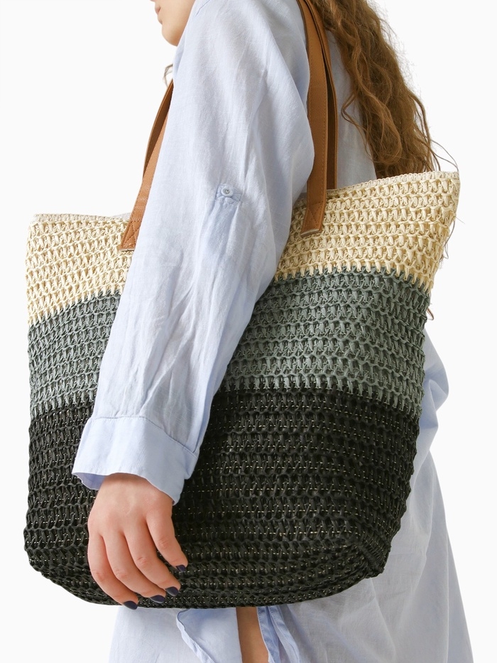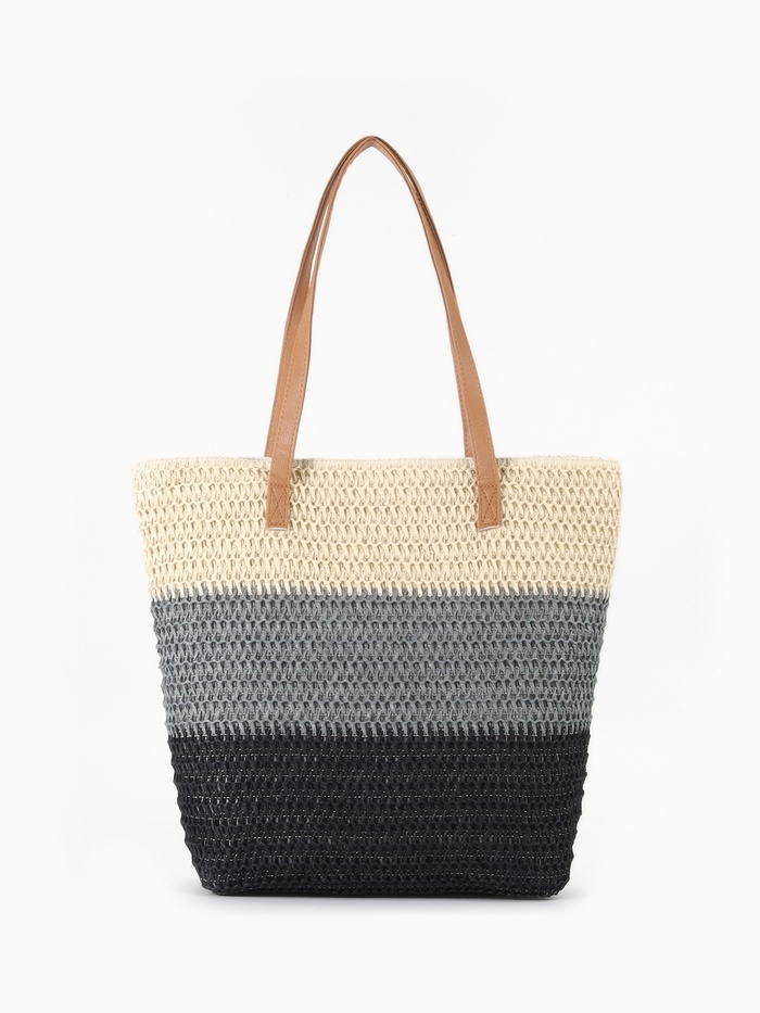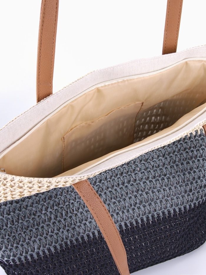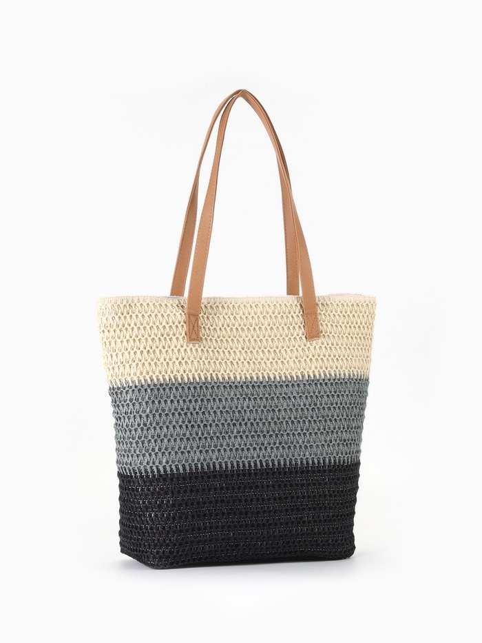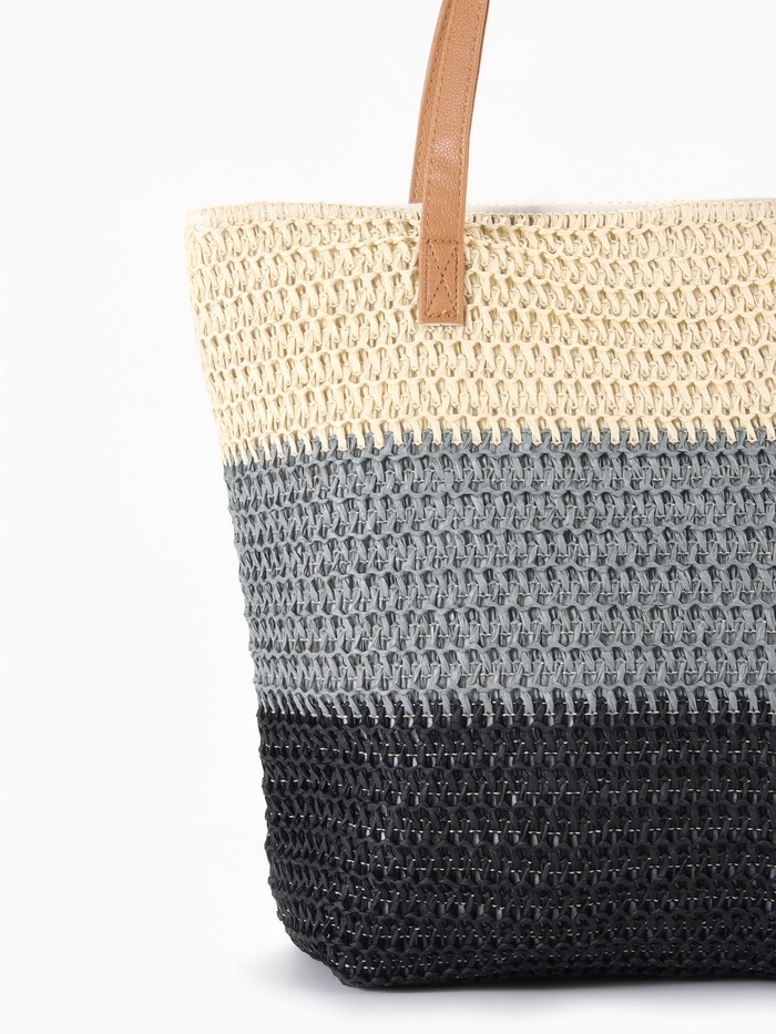Сумка пляжная Полосы, 47*12*35, отд на молнии, подкладка, беж/серый/черный