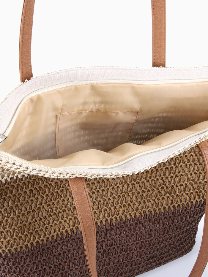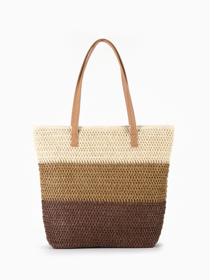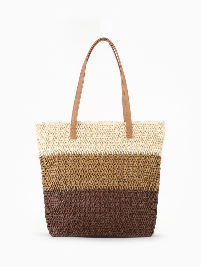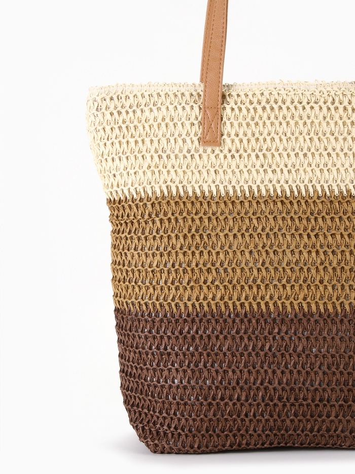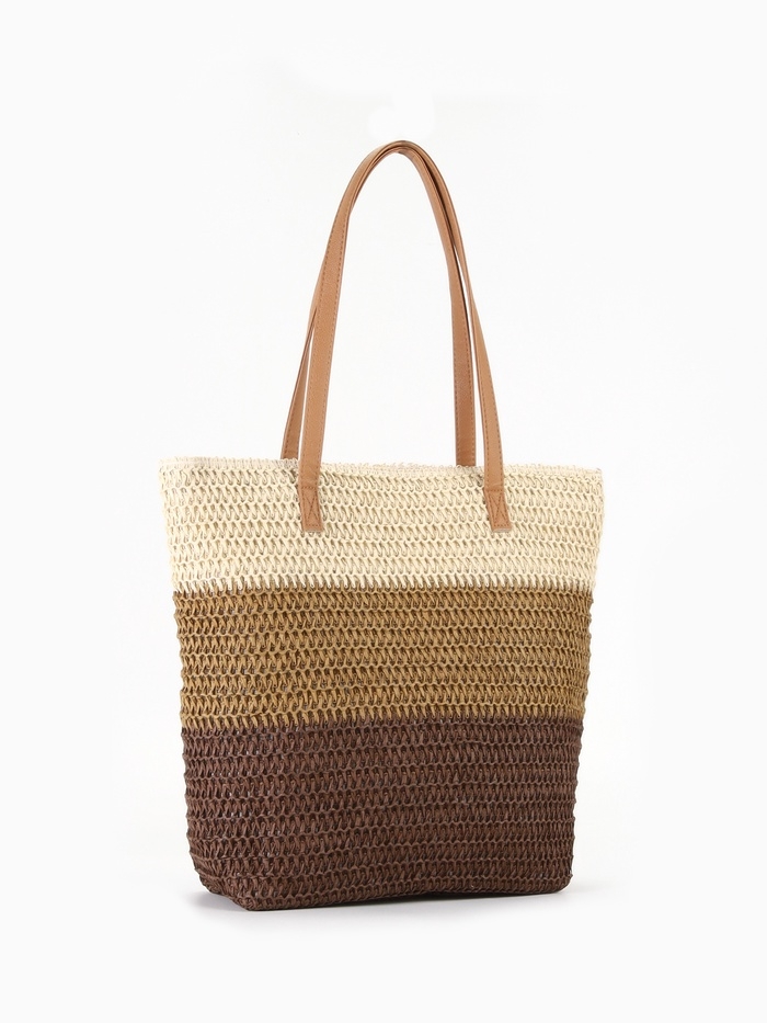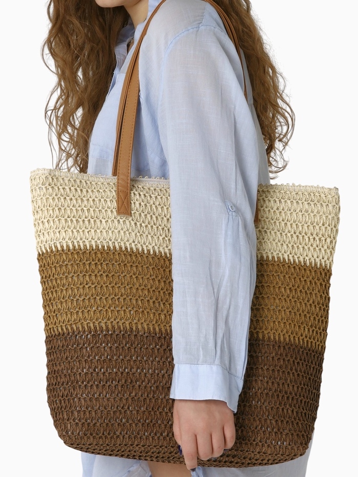 Сумка пляжная Полосы, 47*12*35, отд на молнии, подкладка, беж/коричневый