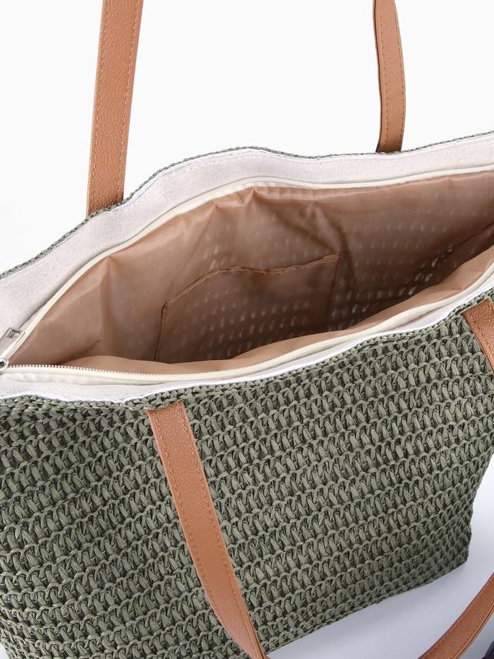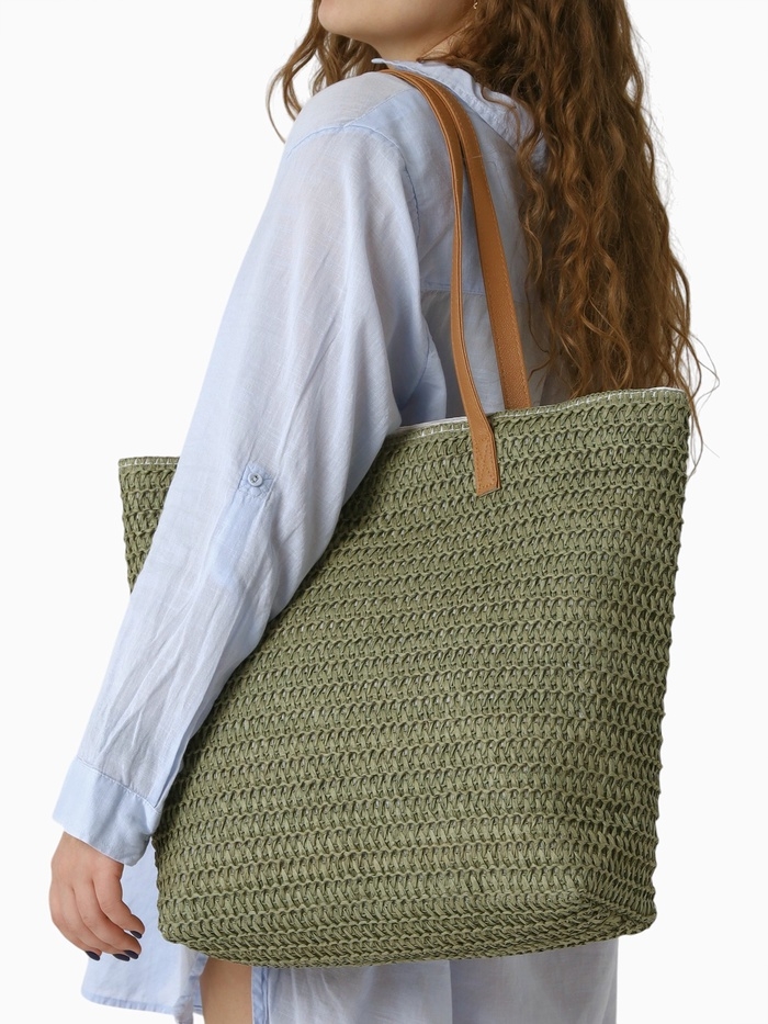 Сумка пляжная Одноцвет, 47*14*35, отд на молнии, подкладка, зеленый