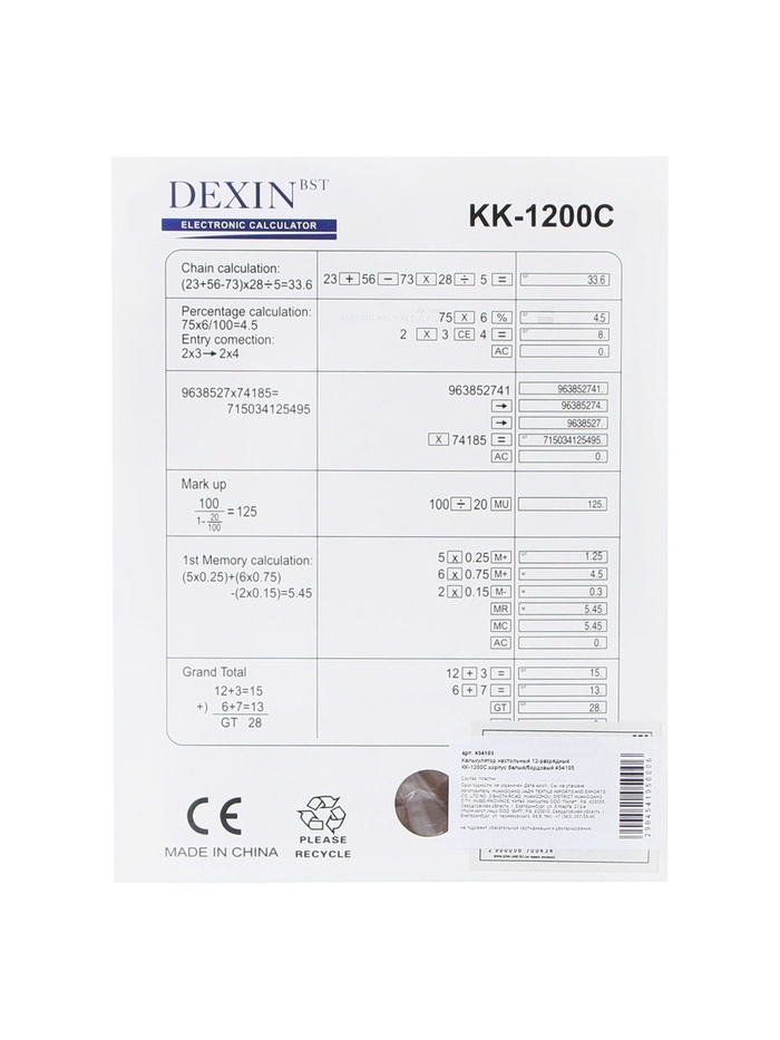 Калькулятор настольный 12-разрядный КК-1200C, белый/бордовый