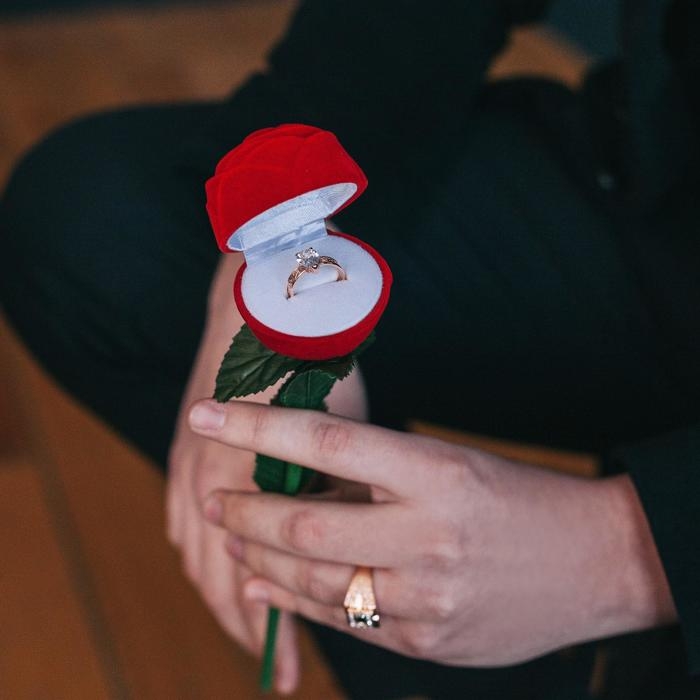 Футляр бархатный под кольцо «Роза на стебле» 4,5×4,5, цвет красно-зелёный, вставка белая