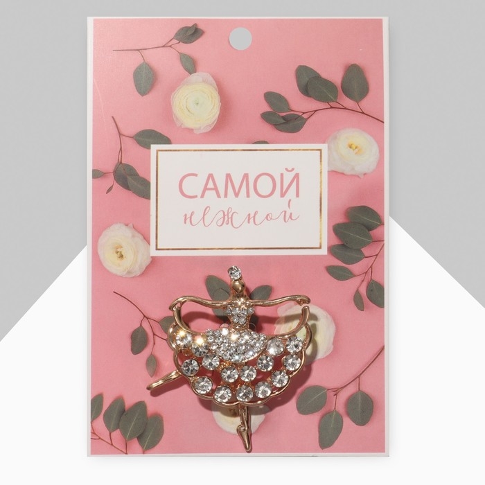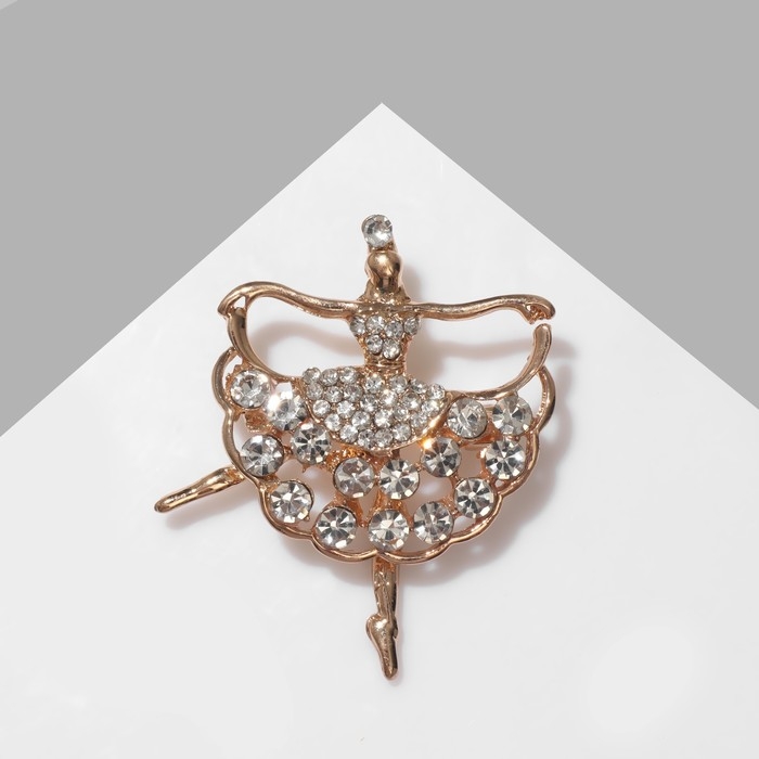 Брошь «Балерина» в стразах, цвет белый в золоте