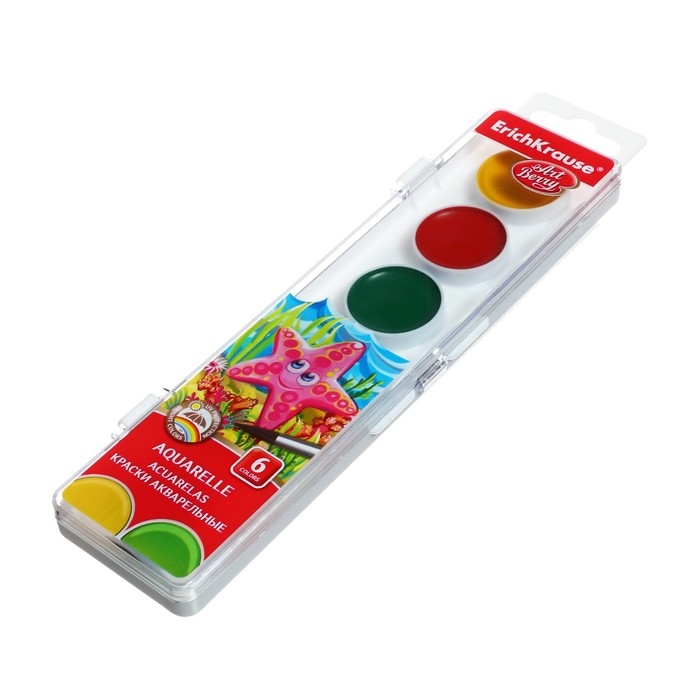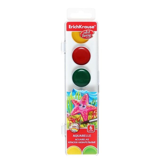 Акварель 6 цветов, ErichKrause ArtBerry, с УФ-защитой, без кисти, пластиковая коробка, европодвес