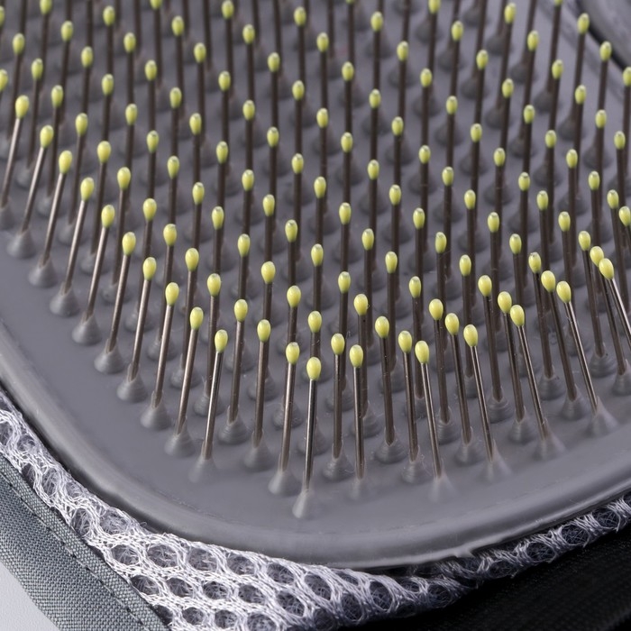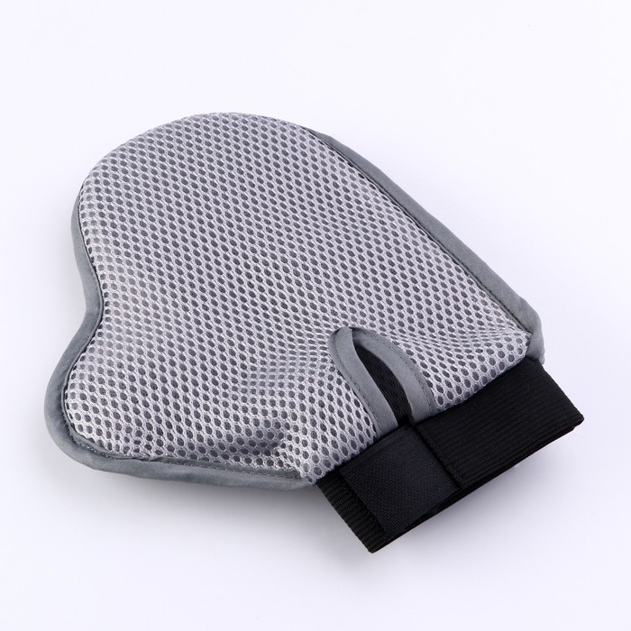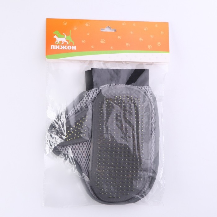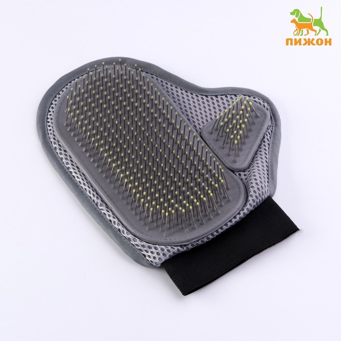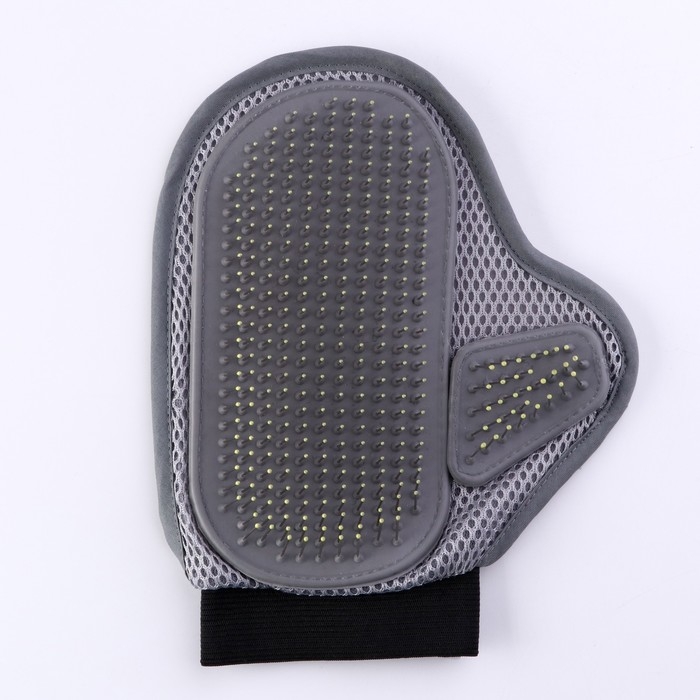 Рукавица - расческа с металлическими зубьями, серая