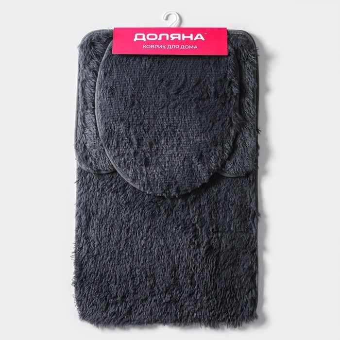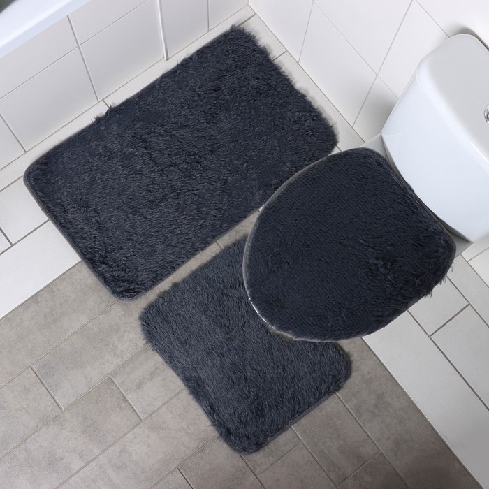 Набор ковриков для ванной и туалета Доляна «Пушистик», 3 шт., 40×44, 40×50, 50×80 см, серый