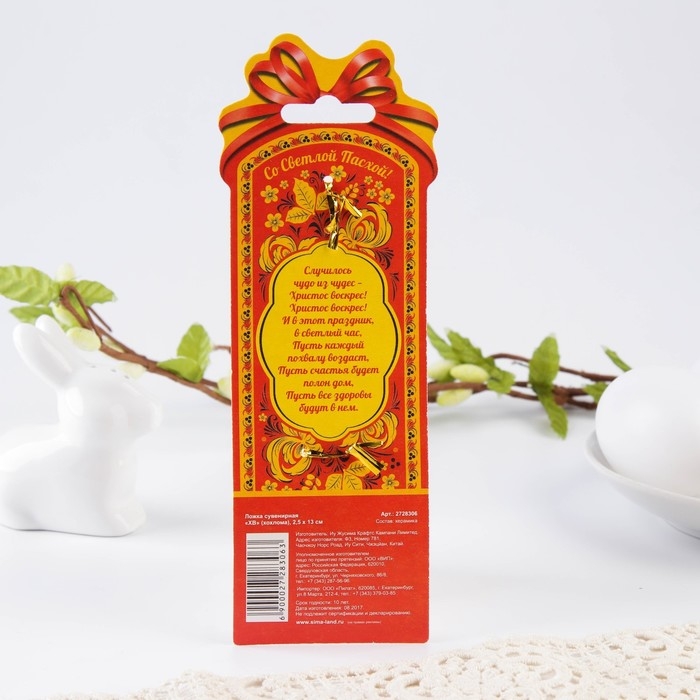 Ложка сувенирная на пасху «ХВ», (хохлома), 2,5 х 13 см