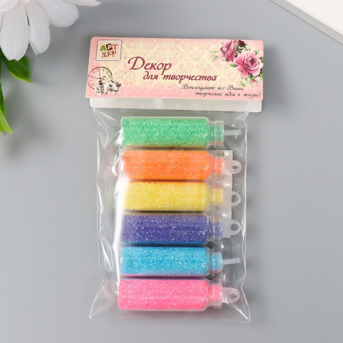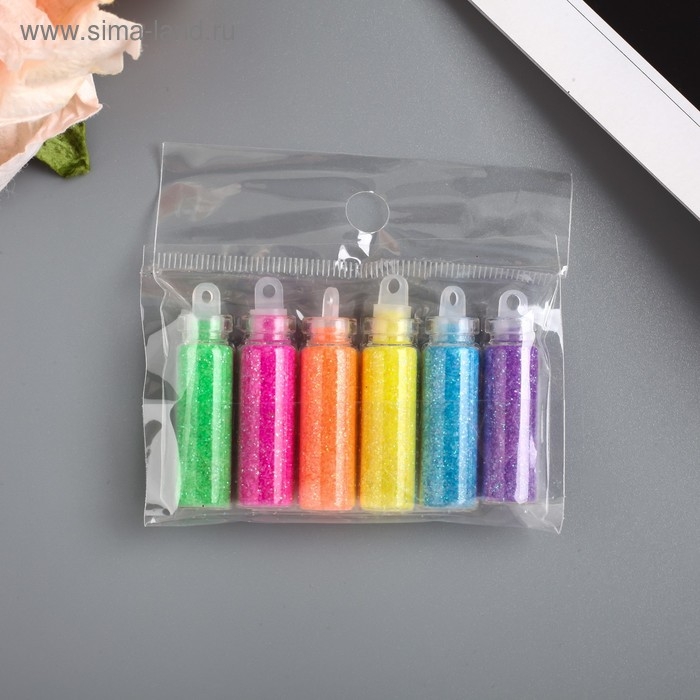 Глиттер набор 6 бутылочек "Пастель", вес глиттера в 1 бут - 1,2 гр, цвет микс