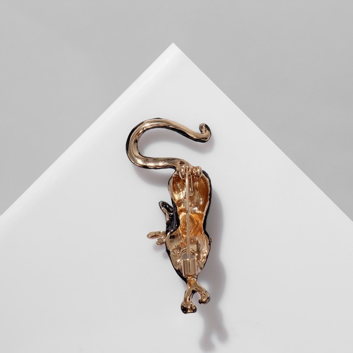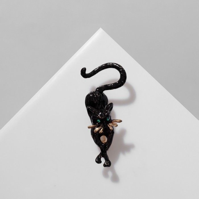 Брошь «Кошка» грация, цвет чёрный в золоте