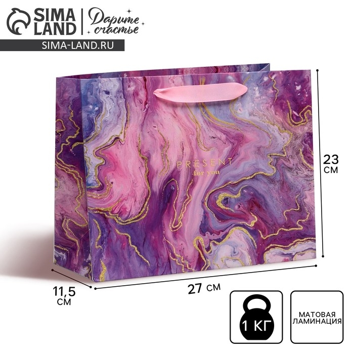 Пакет подарочный ламинированный горизонтальный, упаковка, «Разводы», ML 27 х 23 х 11,5 см