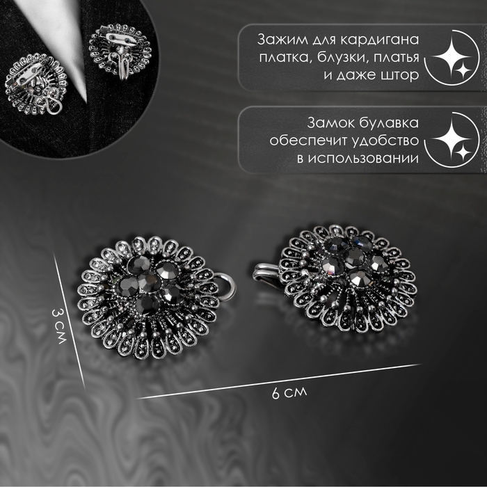 Зажим для кардигана «Барокко», цвет серый в серебре