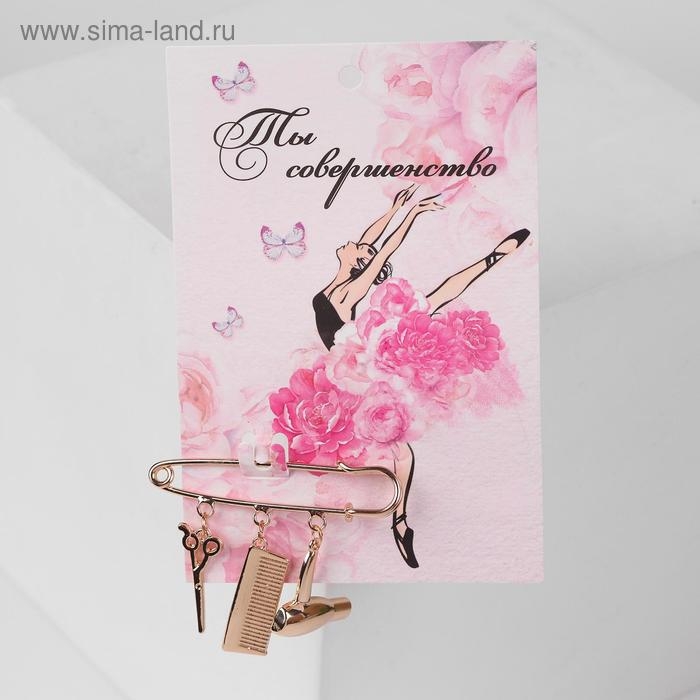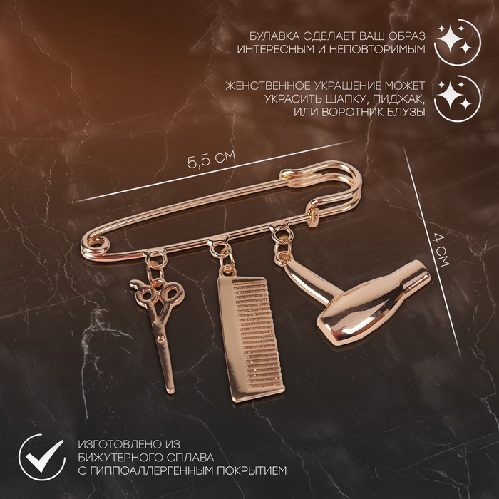 Булавка с подвесками «Парикмахер», 5,5 см, цвет розовое золото