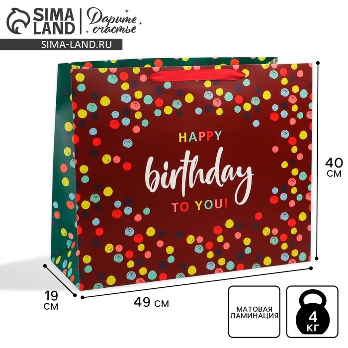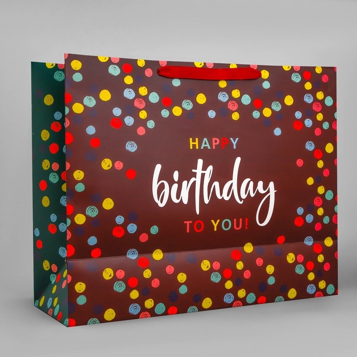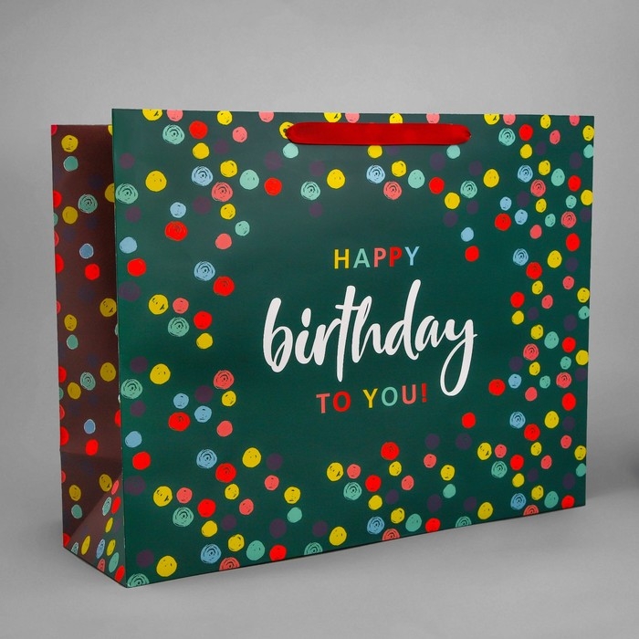 Пакет подарочный ламинированный вертикальный, упаковка, «С днём рождения», XL 49 х 40 х 19 см