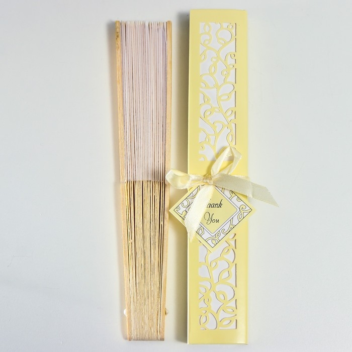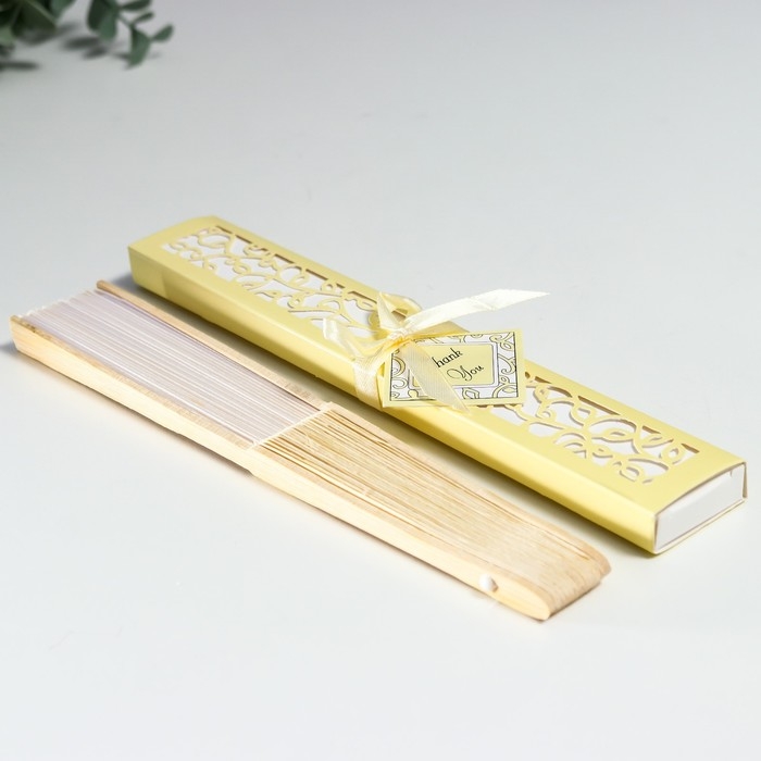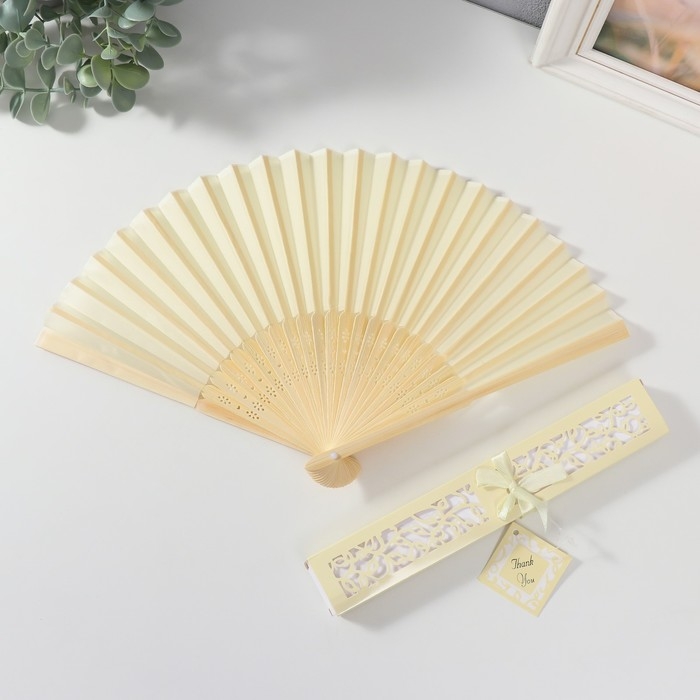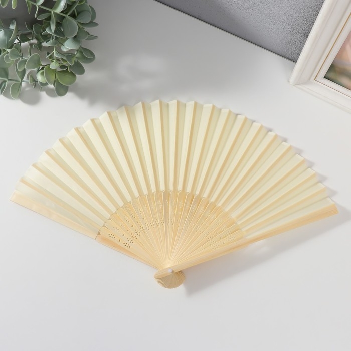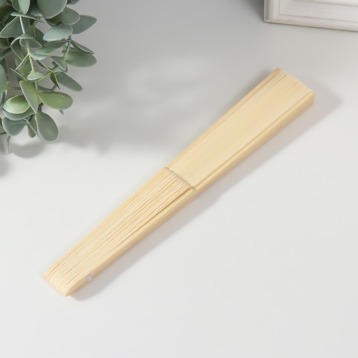 Веер бамбук, текстиль h=21 см "Моноцвет" в коробке, бежевый