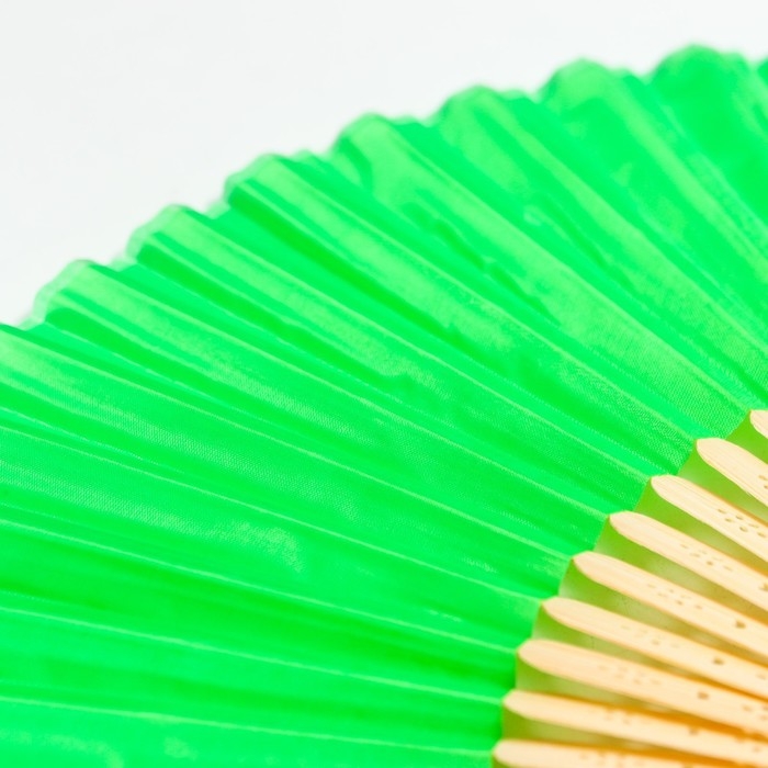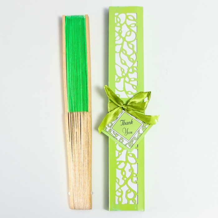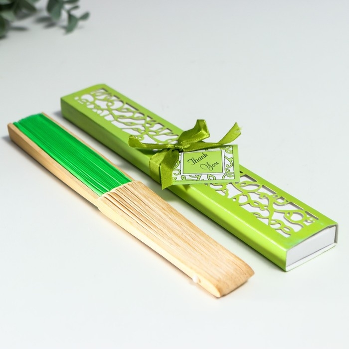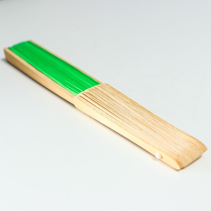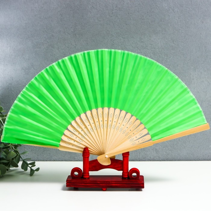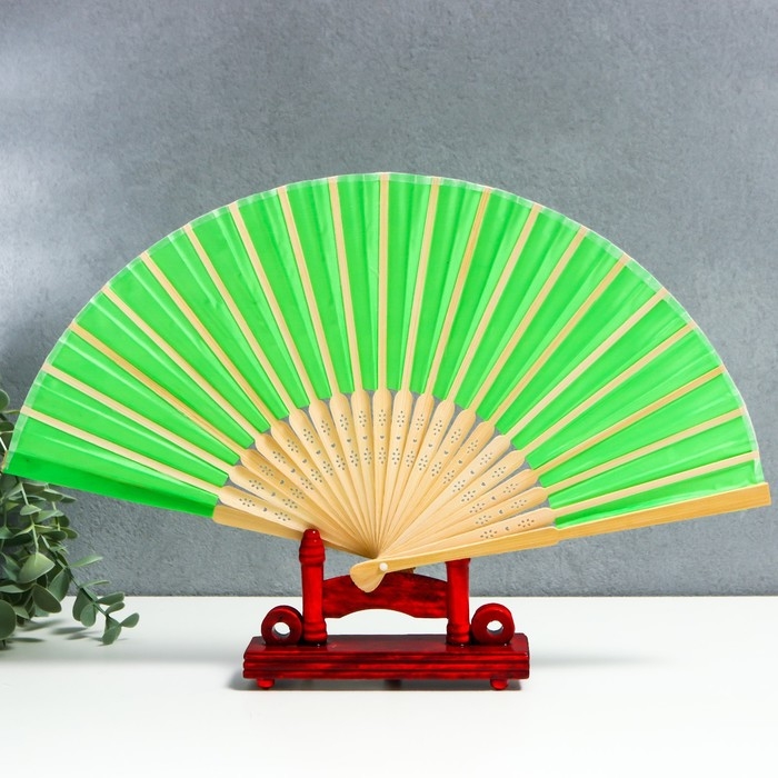 Веер бамбук, текстиль h=21 см "Моноцвет" в коробке, зелёный