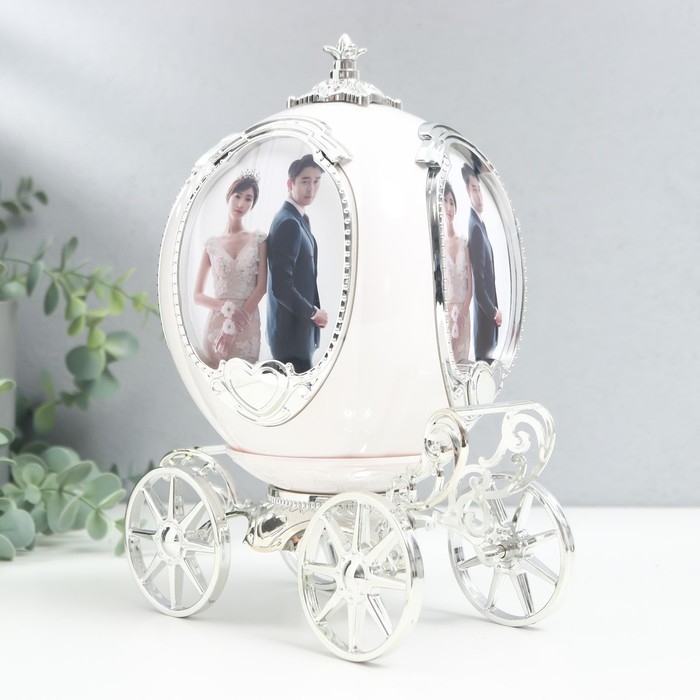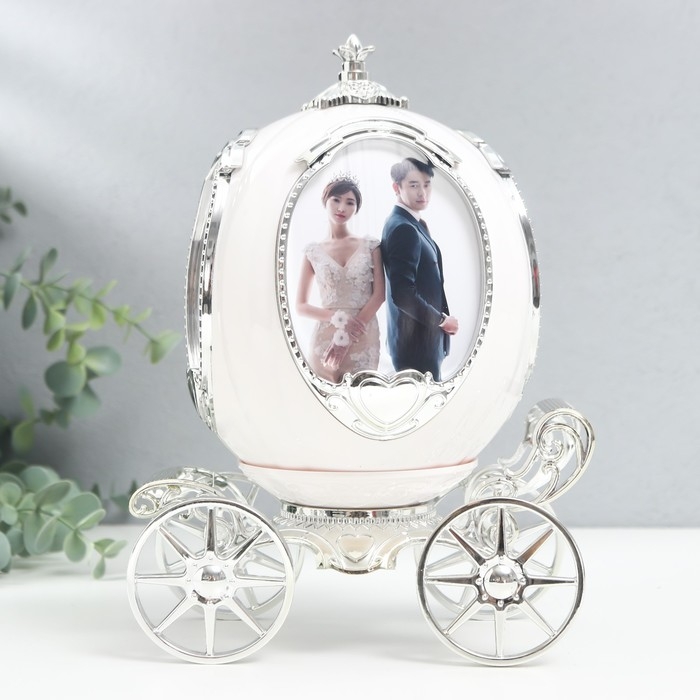 Фоторамка пластик 10х7,5 см музыка "Карета" белая с серебром 24х17,5х13 см