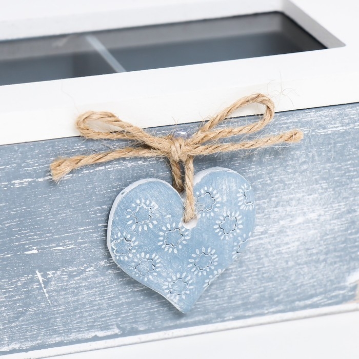 Шкатулка дерево, стекло с делениями "Звёздное сердце" 16,4х9х7 см