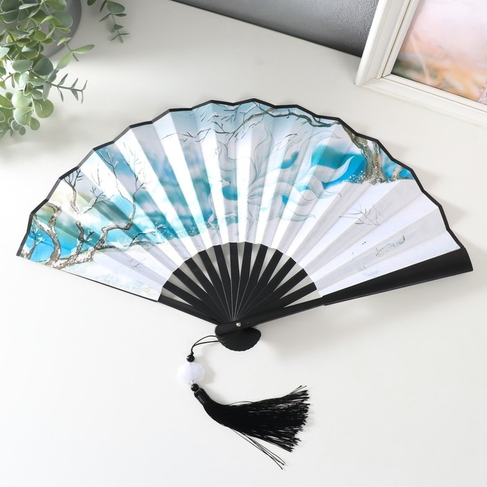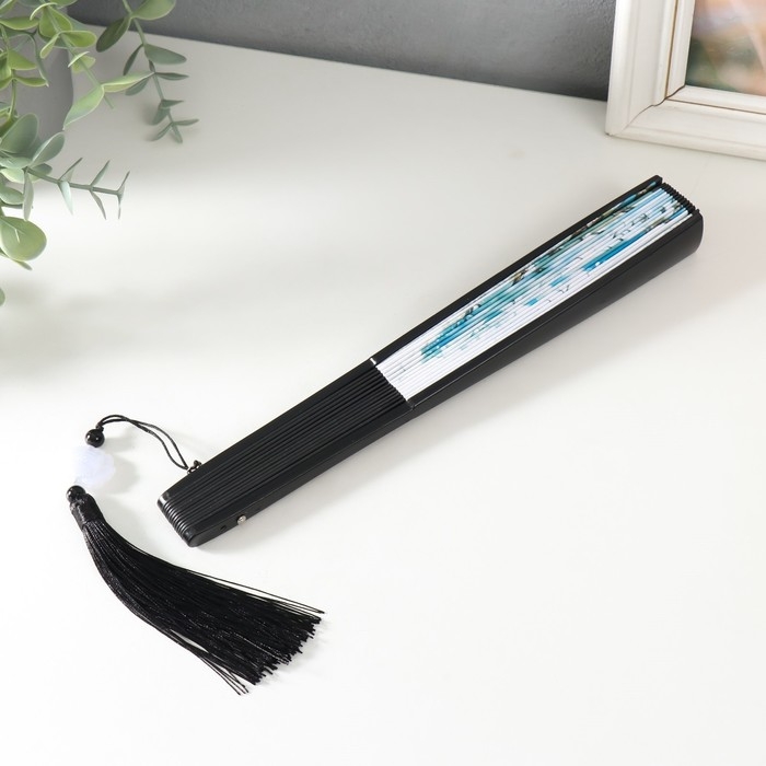 Веер пластик, текстиль h=27 см "Девятихвостый лис" с кисточкой