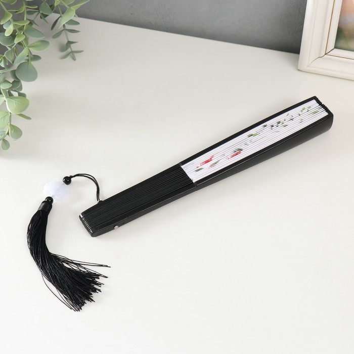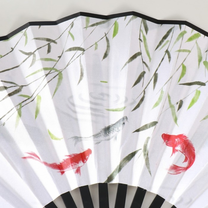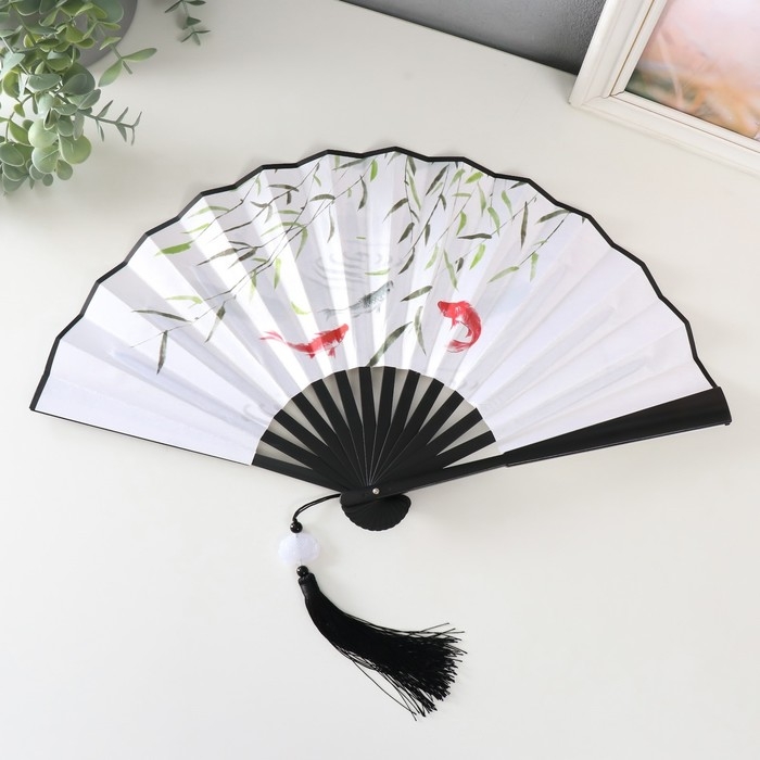 Веер пластик, текстиль h=27 см "Карпы в пруду" с кисточкой