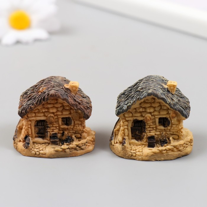 Фигурка для флорариума полистоун "Домик с соломенной крышей" МИКС 4х3,2х3,2 см