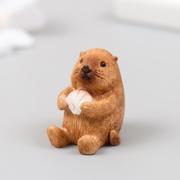 Фигурка для флорариума полистоун "Выдра с ракушкой" 2х2х3 см