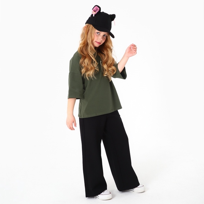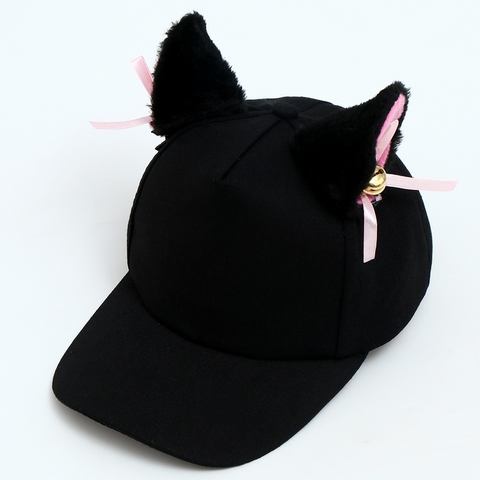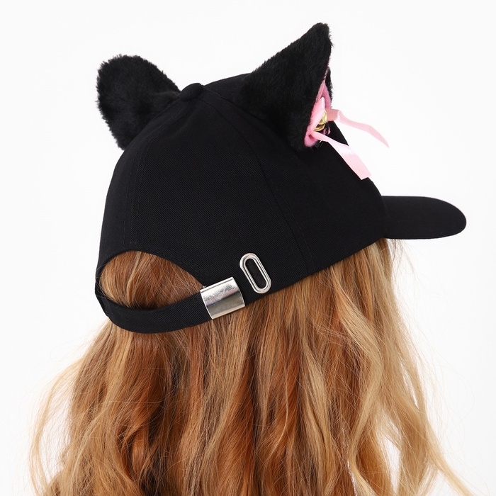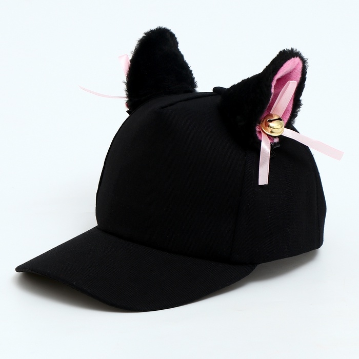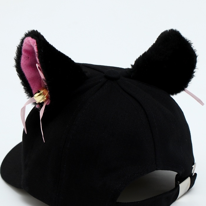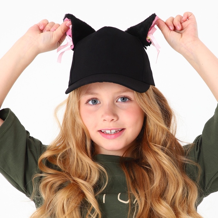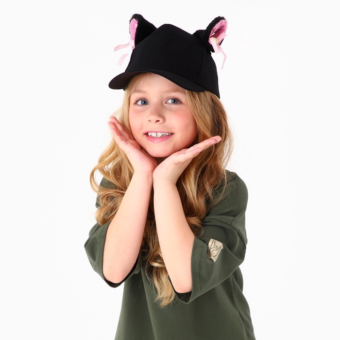 Кепка детская для девочки "Кошечка" с ушками, цвет черный, р-р 52-54, 5-7 лет