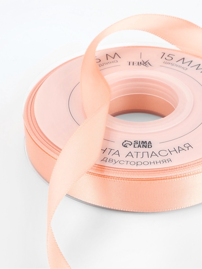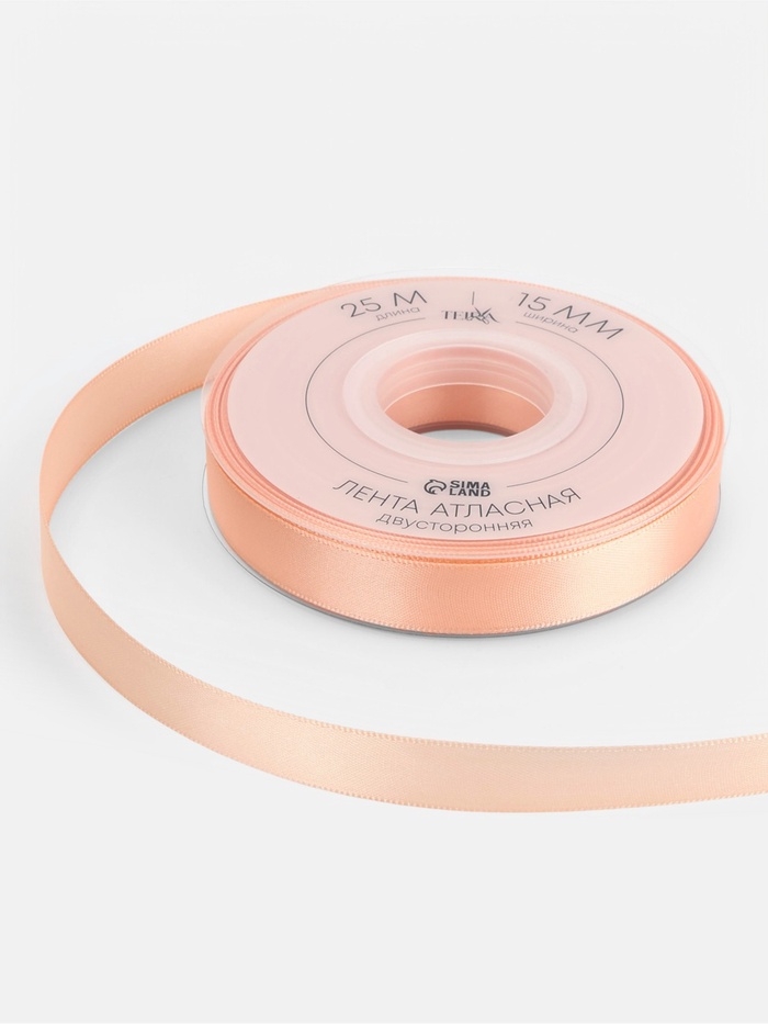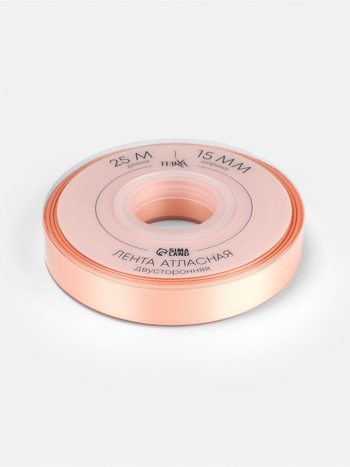 Лента атласная двухсторонняя №0714 15мм*25±1м персиковый пух TR