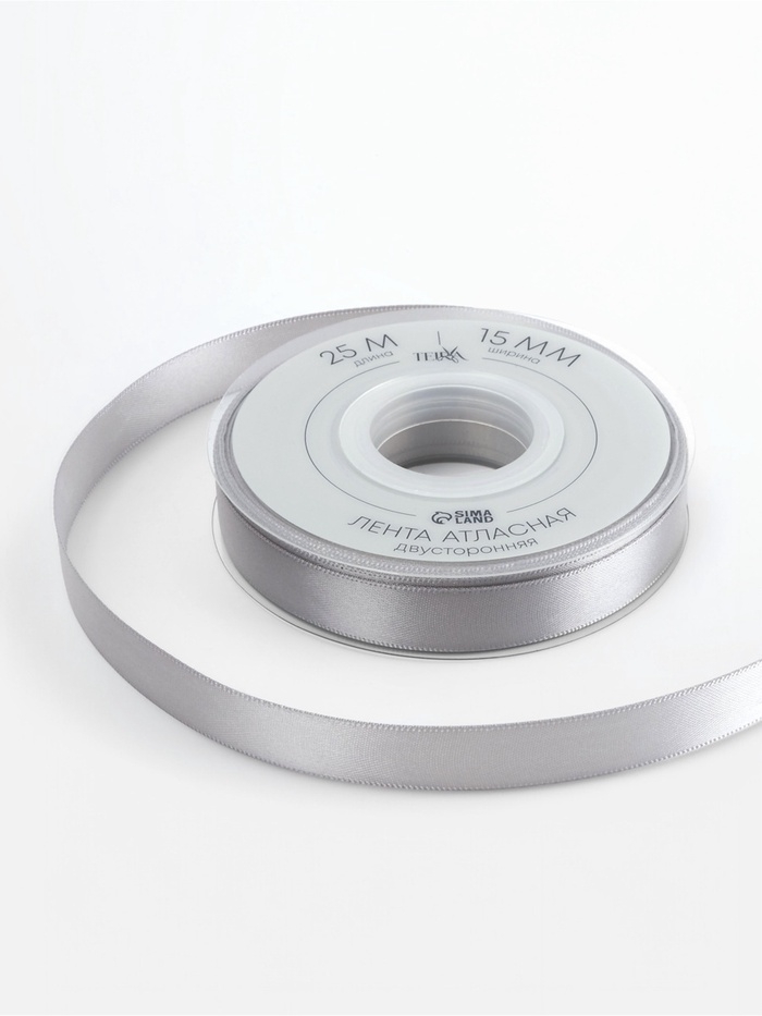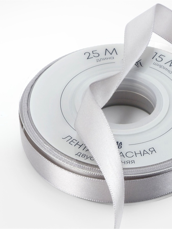 Лента атласная двухсторонняя №837 15мм*25±1м серебряный TR
