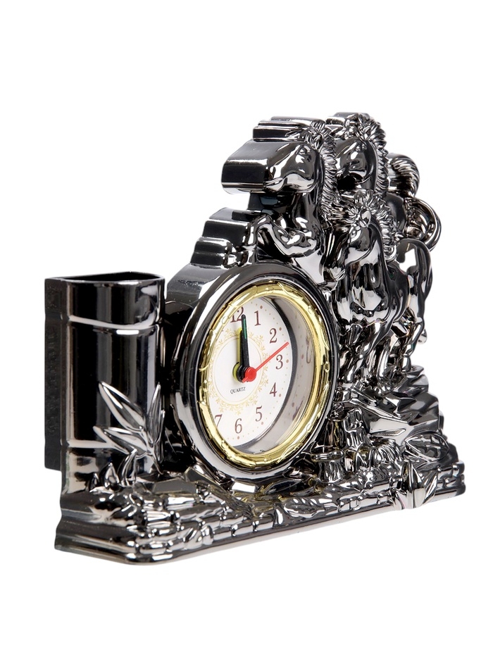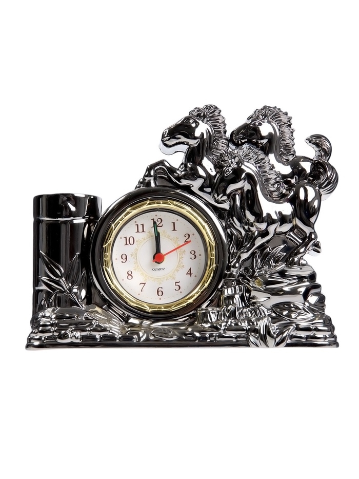 Часы настольные - органайзер для канцелярии будильник «Кони», 14×17×4 см