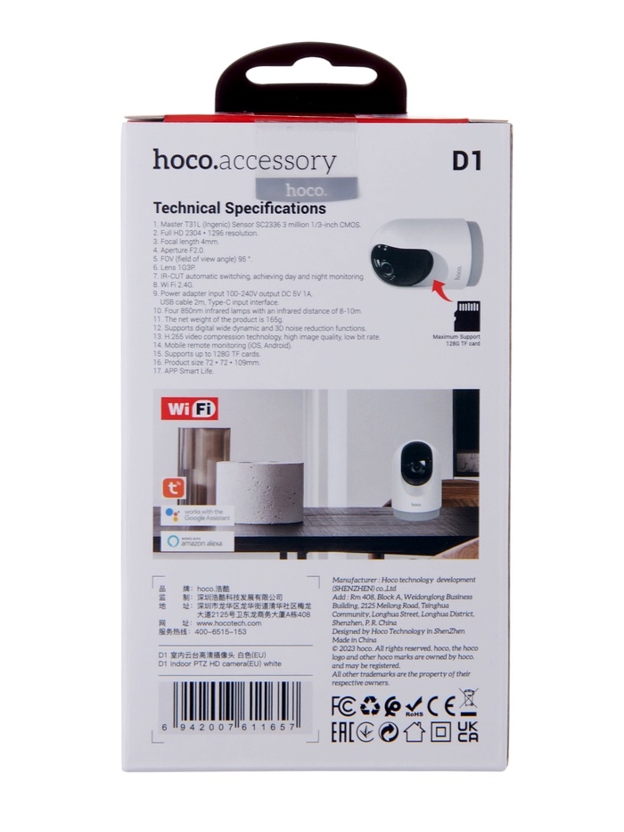 Камера видеонаблюдения Hoco для помещений HD, D1 PTZ, белая