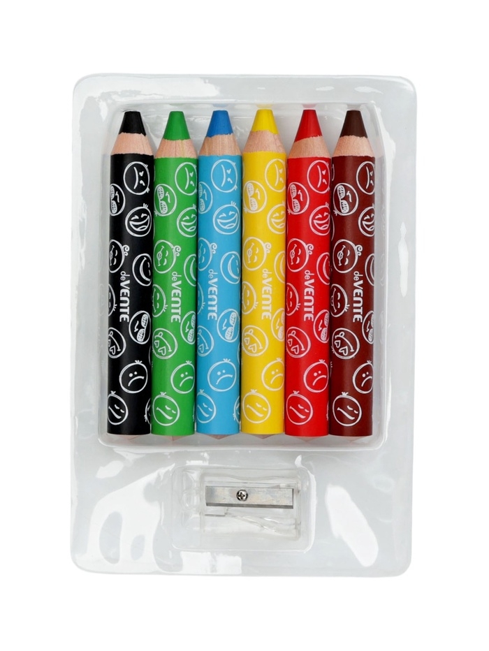 Карандаши акварельные 6 цветов, мини deVENTE Jumbo 3 в 1 супер мягкие, d-14.7 мм; L-110 мм с точилкой