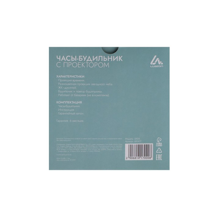 Будильник Luazon LB-04 "Звездная сфера", проекционный, белый
