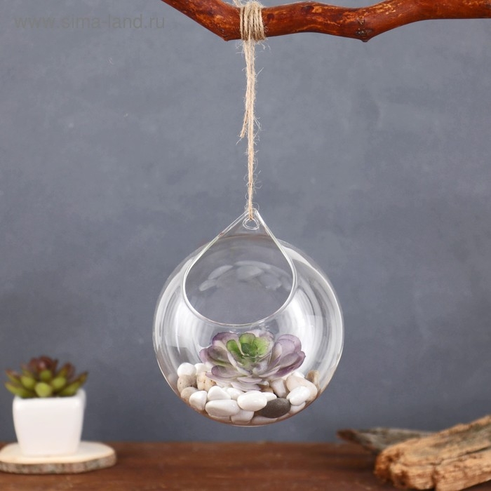 Флорариум "Шар капля" с верёвкой, 12х12х13 см