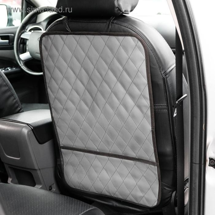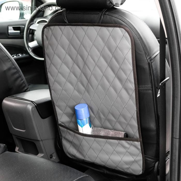 Накидка-незапинайка на спинку сиденья Cartage, экокожа, с карманом, 60 х 40 см, серый