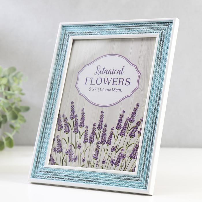 Фоторамка пластик 13х18 см "Плетение" сине-голубая с белой обводкой 21,5х16,5 см