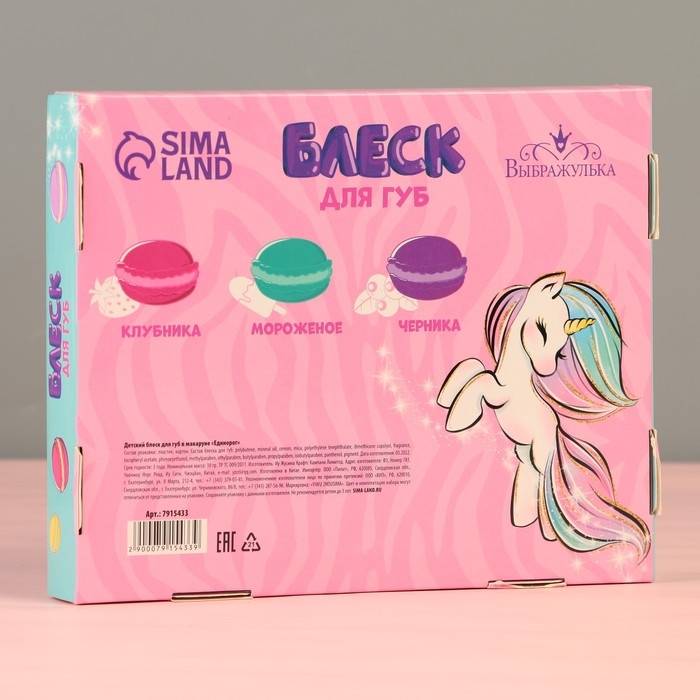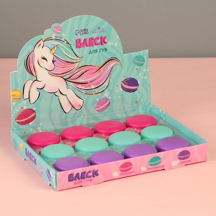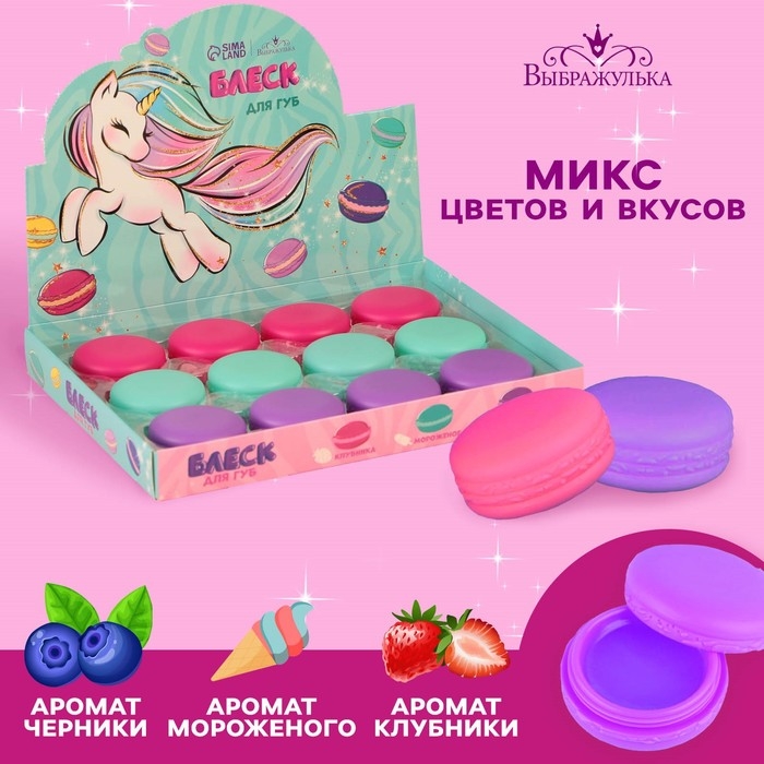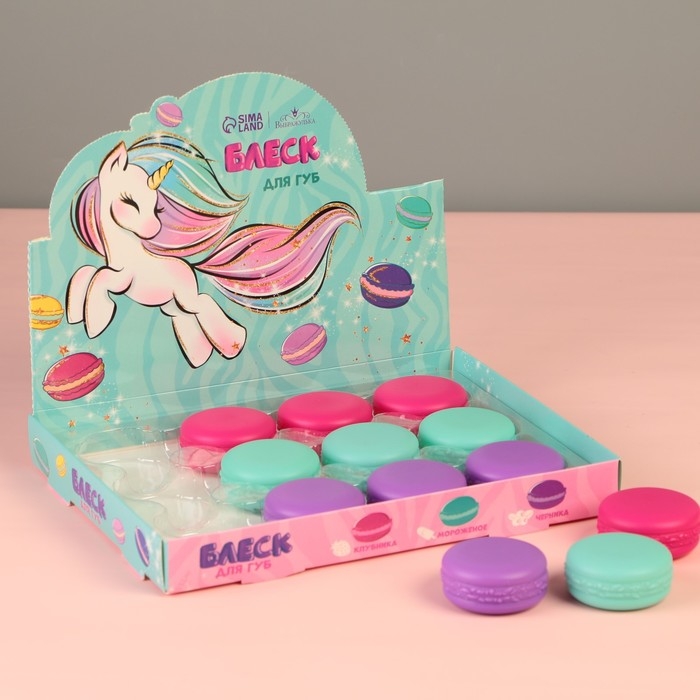 Детский блеск для губ в макаруне «Единорог», МИКС цветов и ароматов, 10 г