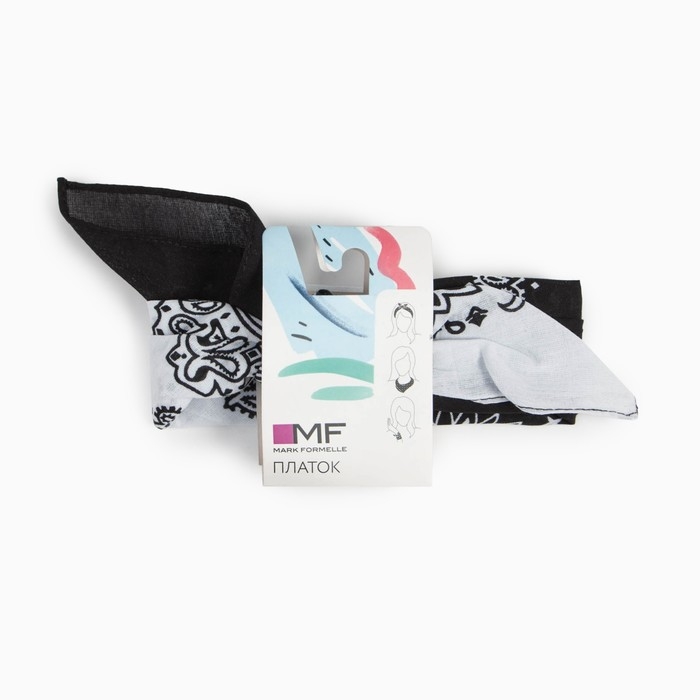 Платок женский, цвет белый/чёрный, размер 53х53