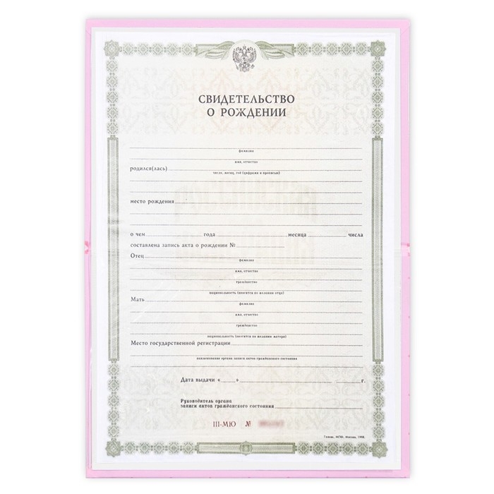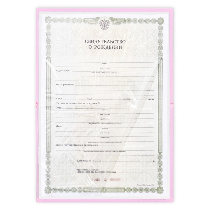 Папка под свидетельство о рождении имеет удобный файл внутри, который защитит первый в жизни документ малыша от повреждений.
