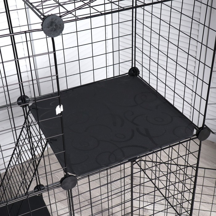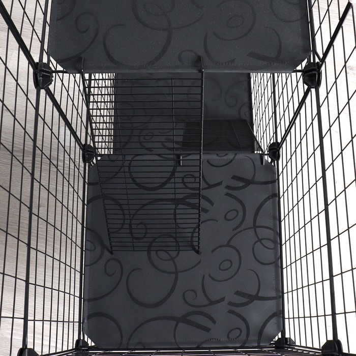 Вольер 24 секции с полками текстильными, металлический, черный, 210 х 210 х 35 см, (35 х 35) 96044